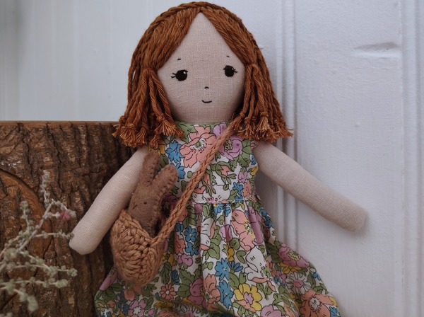 This little doll's name is Ava. She is aproximately 38cm/15 inches tall, with a hand embroidered face. She is firmly stuffed with 100% merino wool.